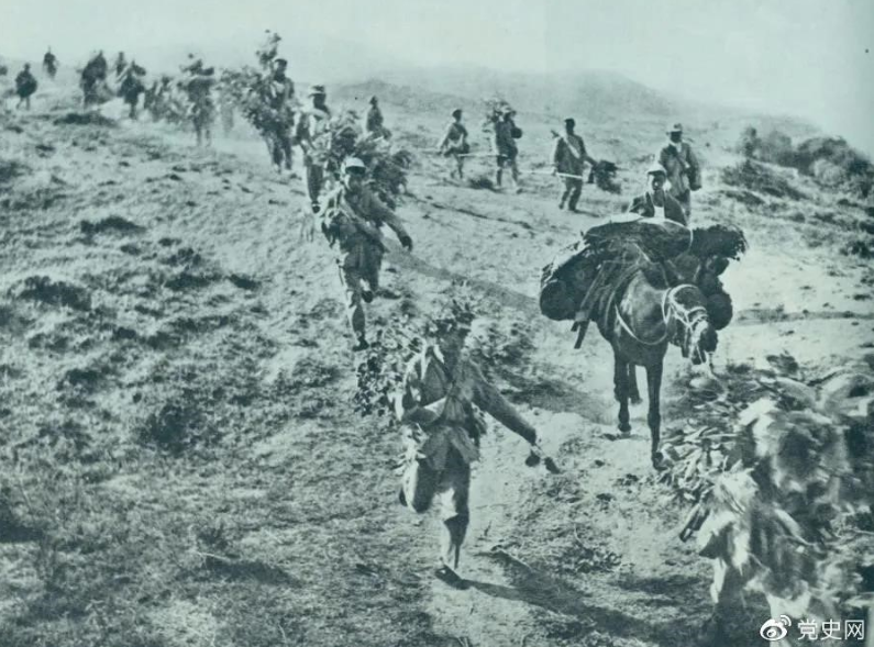 图为1947年5月在孟良崮战役中,华东野战军向孟良崮挺进。