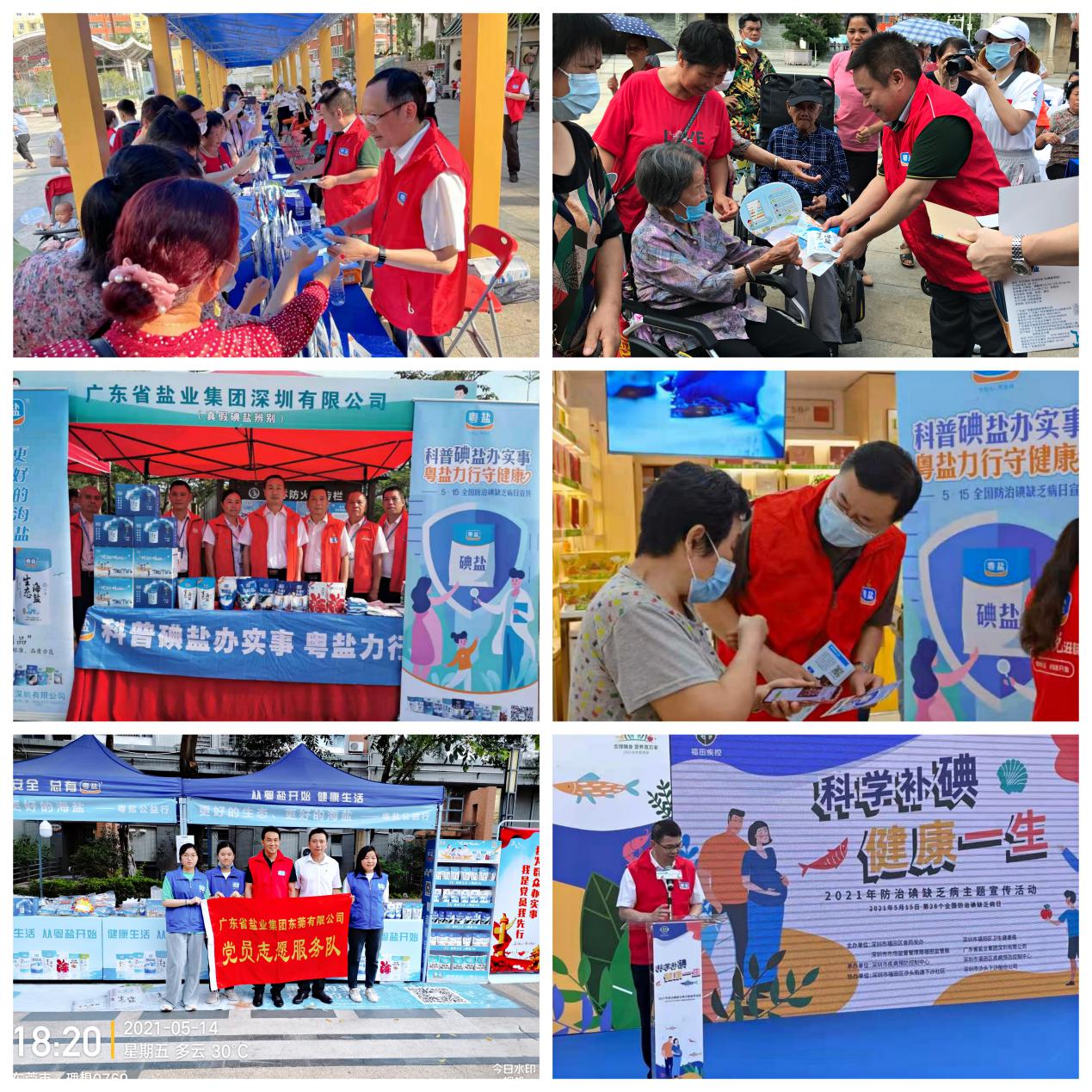 2021年5月15日是我国第28个“防治碘缺乏病日”。为实现《健康中国行动(2019-2030年)》中碘缺乏病防治有关目标,坚持学史力行、扎实开展“我为群众办实事”实践活动,省盐业集团深圳公司在深圳以及东莞开展了系列线下地推宣传活动,线上淘宝、抖音直播、公众号平台开展碘盐及健康用盐知识科普公益活动,提高社会公众对碘缺乏病防治和碘盐的认识,进一步提升“粤盐”品牌的社会知名度和美誉度。