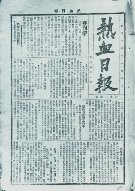 1925年6月4日,为加强五卅运动中的反帝宣传,中共中央创办《热血日报》,由瞿秋白任主编。