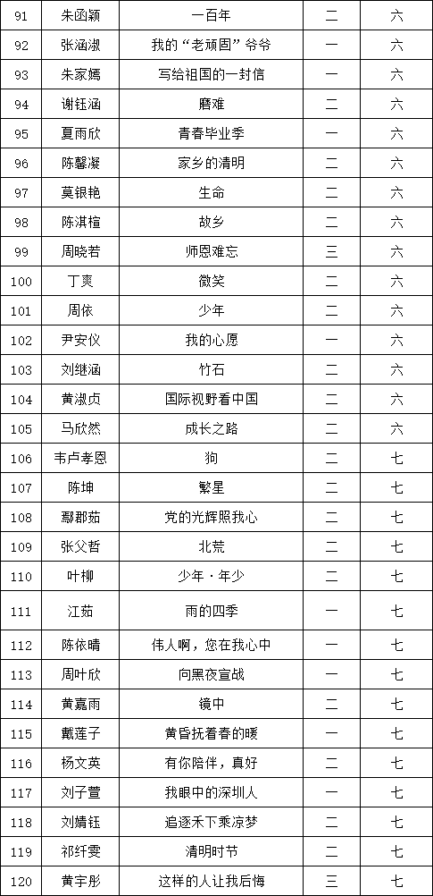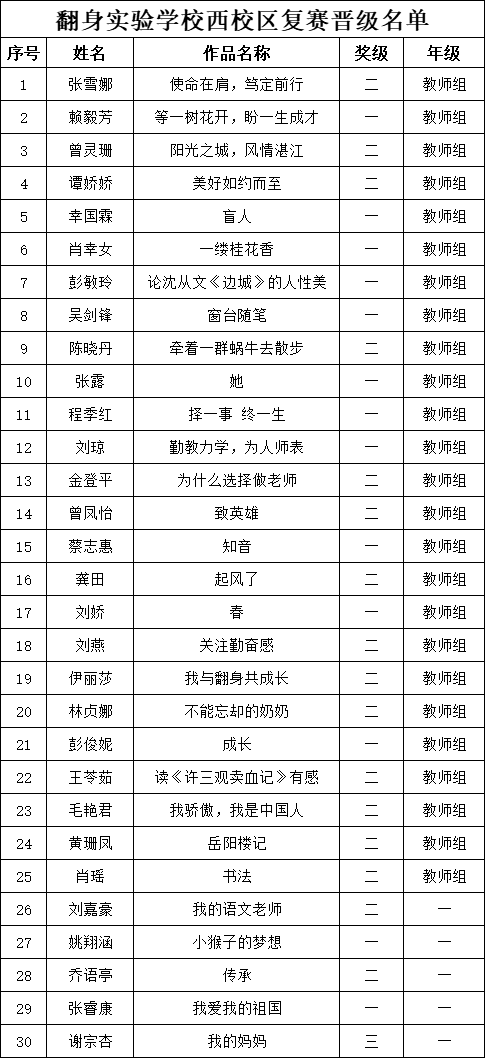 自2021年1月,活动征稿启动以来,获得了深圳市广大中小学生、教师、文学爱好者的热烈响应积极参与,吸引了深圳百余所学校的上万人关注报名。现公布翻身实验学校西校区晋级复赛名单如下: