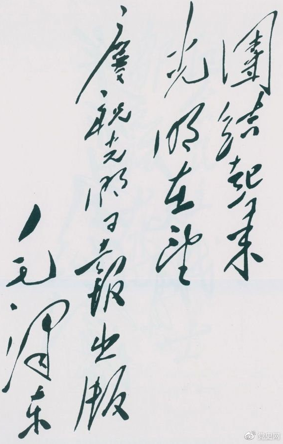 1949年6月16日,毛泽东为庆祝光明日报出版题词:团结起来,光明在望。