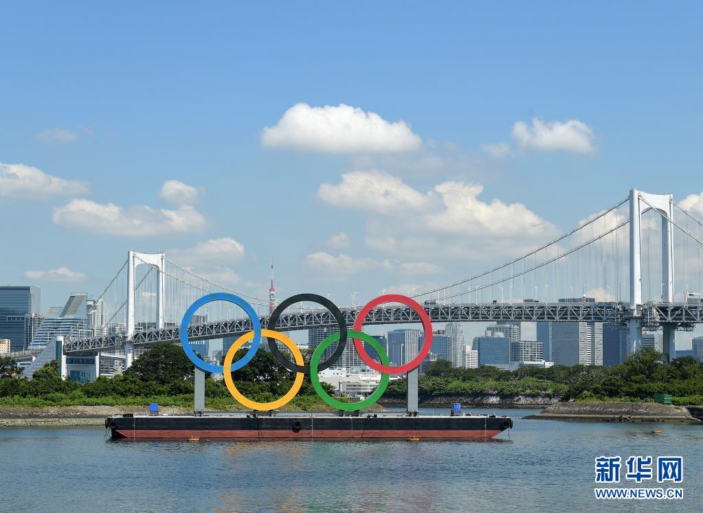 7月22日拍摄的位于东京湾的奥运五环标志。