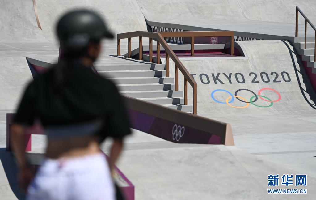 7月22日,中国滑板队队员曾文蕙在东京有明城市运动公园训练。