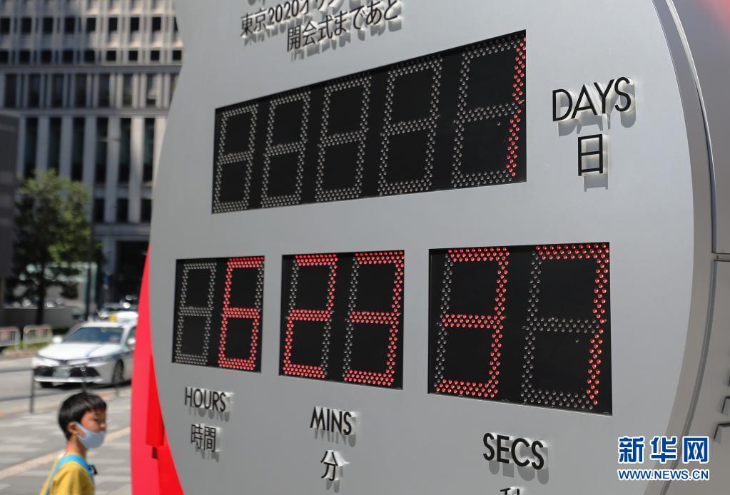 7月22日在东京车站前的广场上拍摄的东京奥运会倒计时电子时钟。
