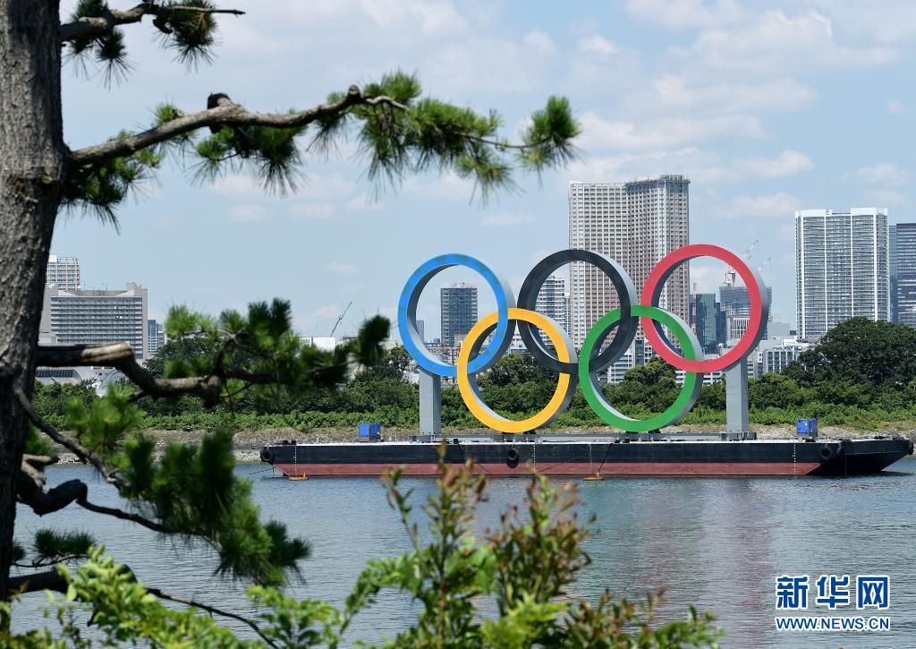 7月22日拍摄的位于东京湾的奥运五环标志。