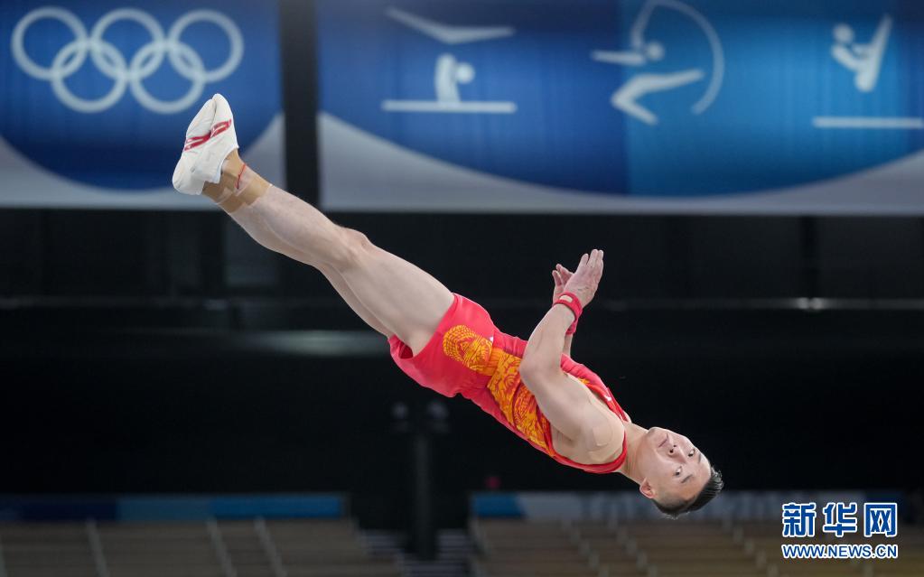 7月21日,中国运动员肖若腾进行鞍马项目训练。