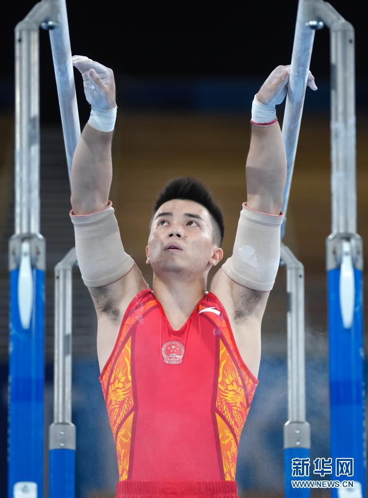 7月21日,中国运动员林超攀准备进行双杠项目训练。