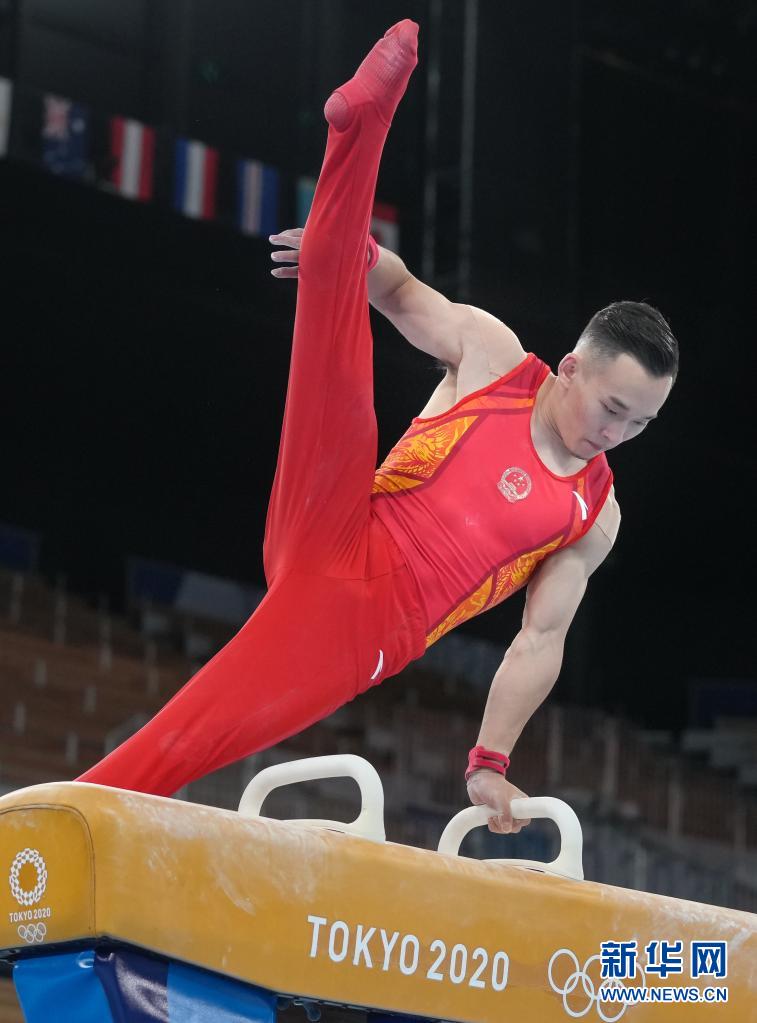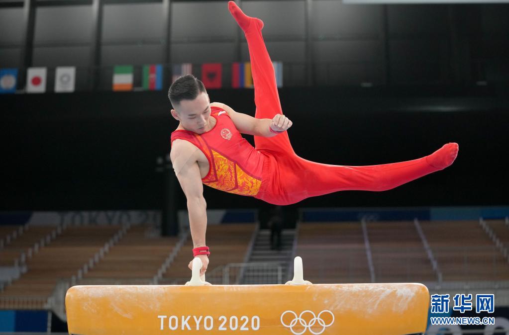 7月21日,中国运动员肖若腾准备进行鞍马项目训练。