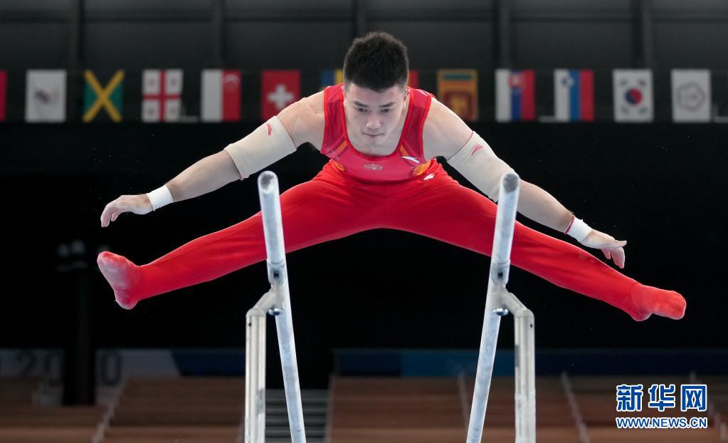 7月21日,中国运动员林超攀进行双杠项目训练。