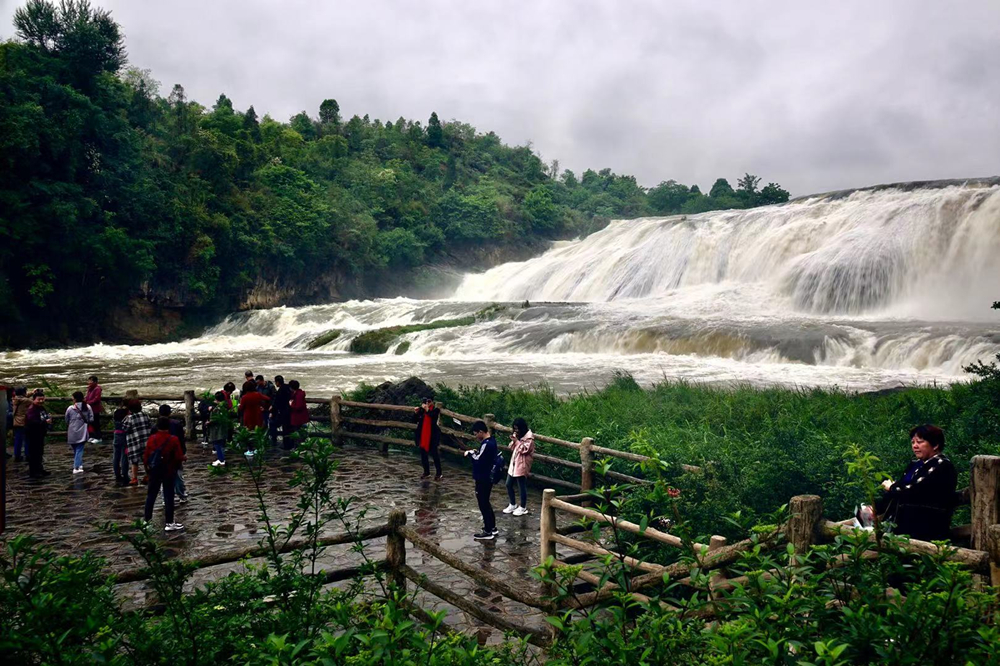 陡坡塘瀑布位于黄果树瀑布上游1公里处,瀑顶宽105米,高21米,是黄果树瀑布群中瀑顶最宽的瀑布。李仁奇 摄