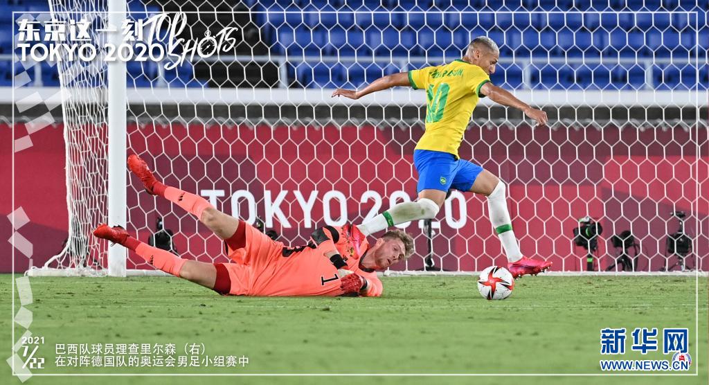 7月22日,巴西队球员理查里尔森(右)在对阵德国队的奥运会男足小组赛中。