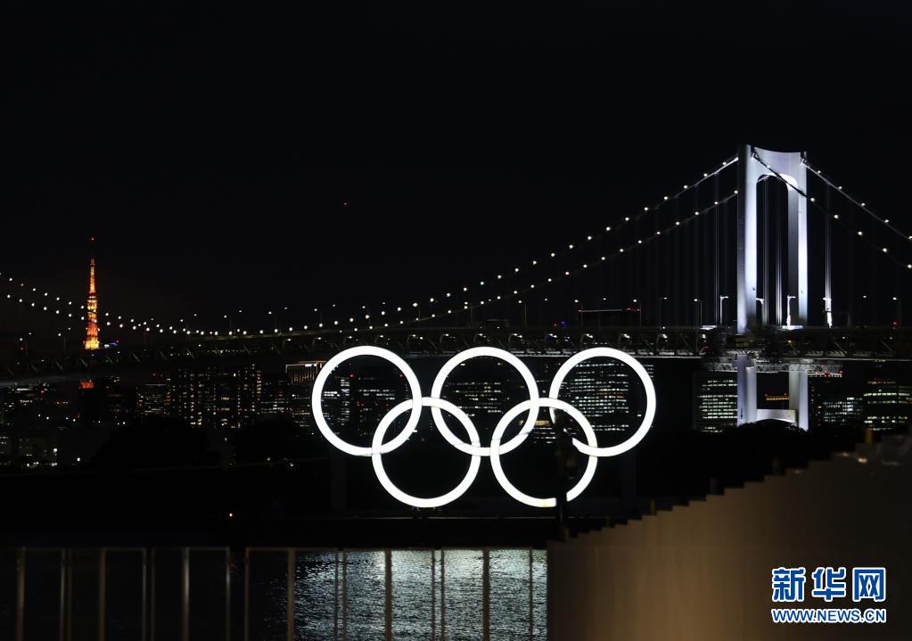 7月21日,位于东京湾的奥运五环标志被点亮。