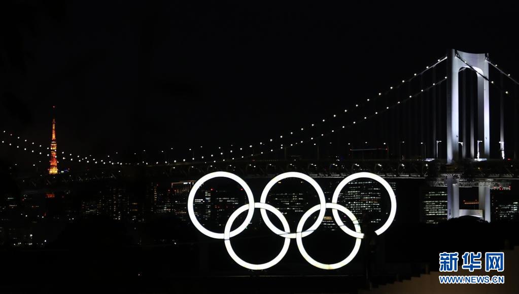7月21日,位于东京湾的奥运五环标志被点亮。