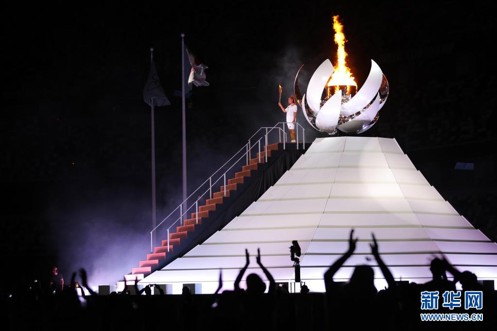 7月23日,日本运动员大坂直美在开幕式上点燃主火炬。