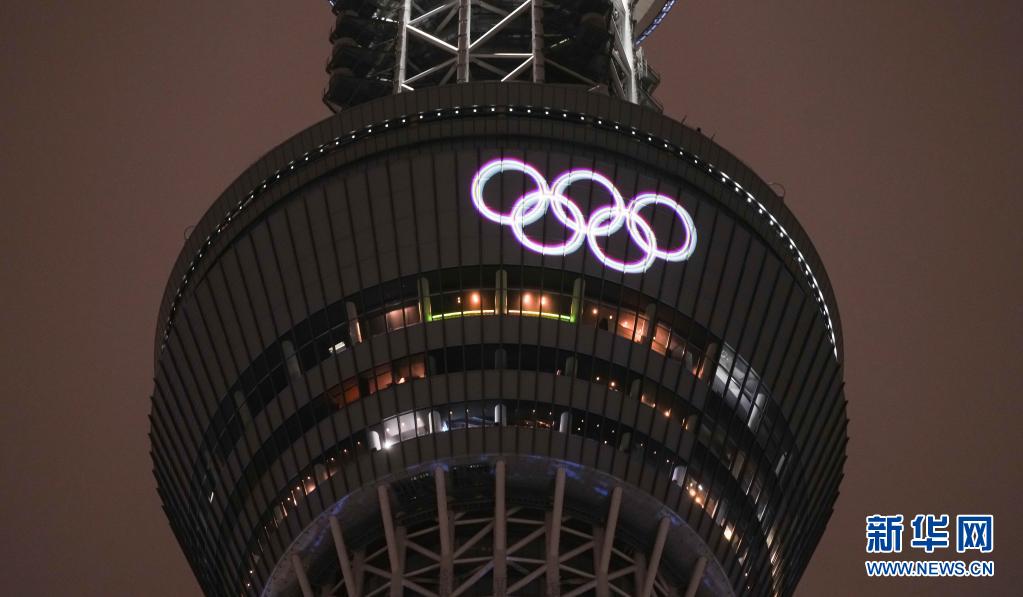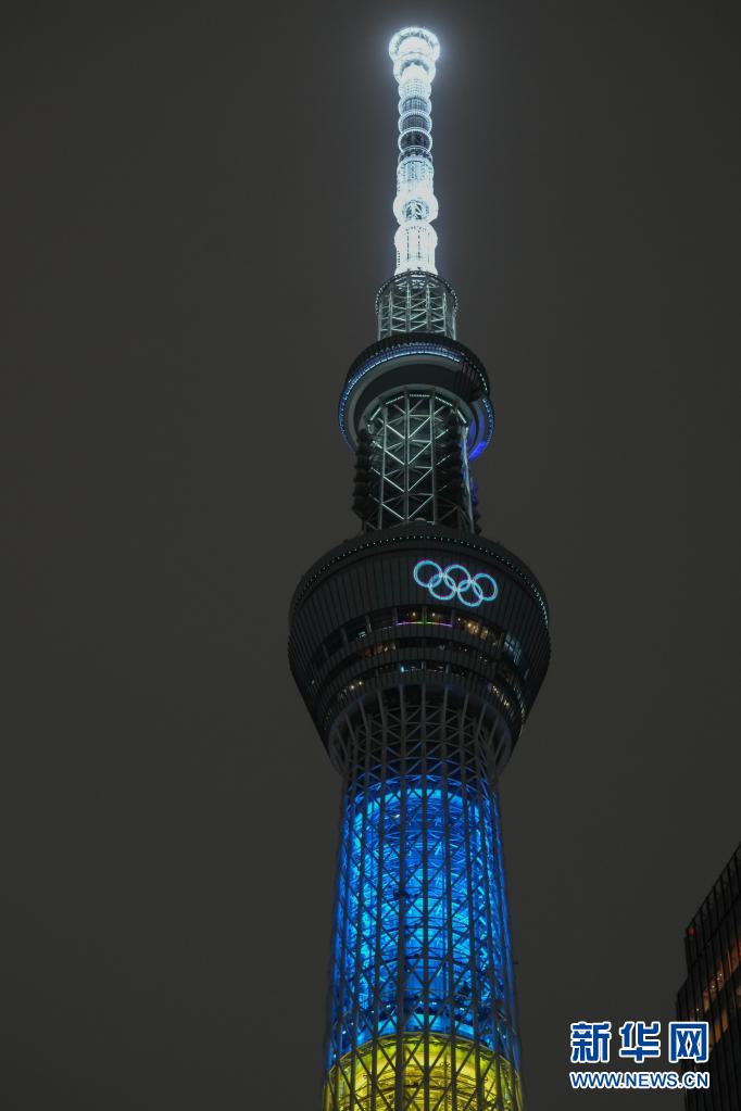 当晚,东京晴空塔亮起的五色灯光,与奥运遥相呼应,为参赛运动员加油。