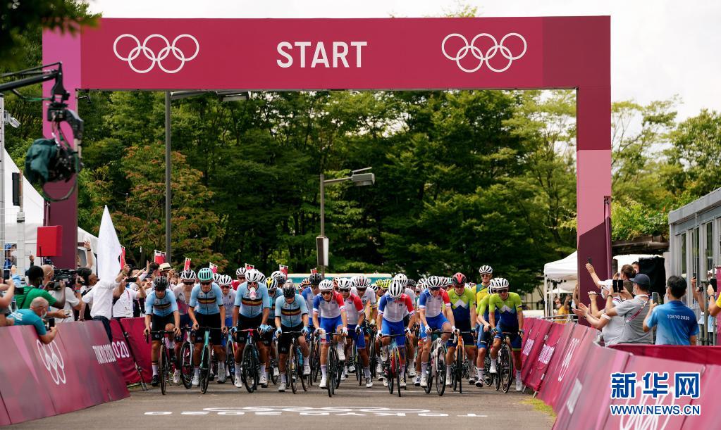 当日,东京奥运会自行车男子公路赛在日本静冈富士国际赛车场发车。
