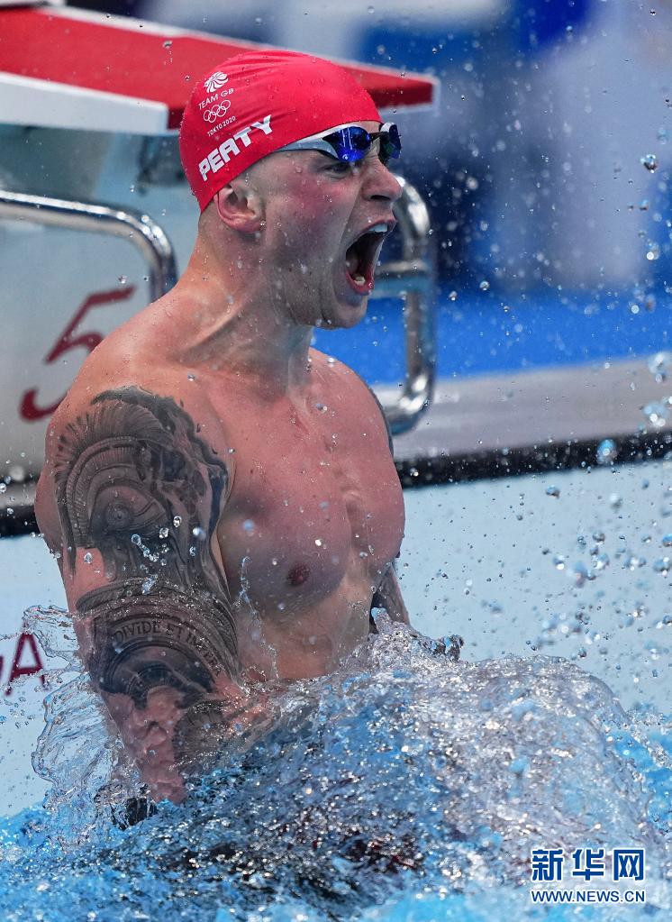 当日,在东京水上运动中心举行的东京奥运会游泳比赛男子100米蛙泳决赛中,英国选手亚当·皮蒂夺得冠军。