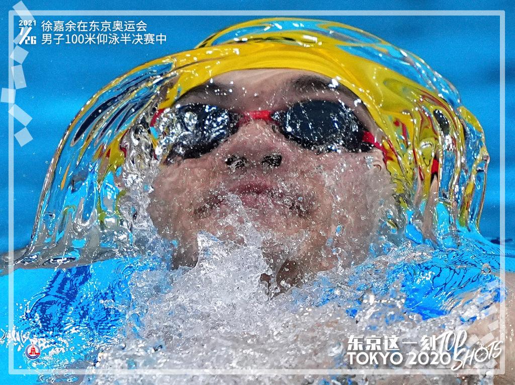 7月26日,中国选手徐嘉余在东京奥运会游泳项目男子100米仰泳半决赛中。