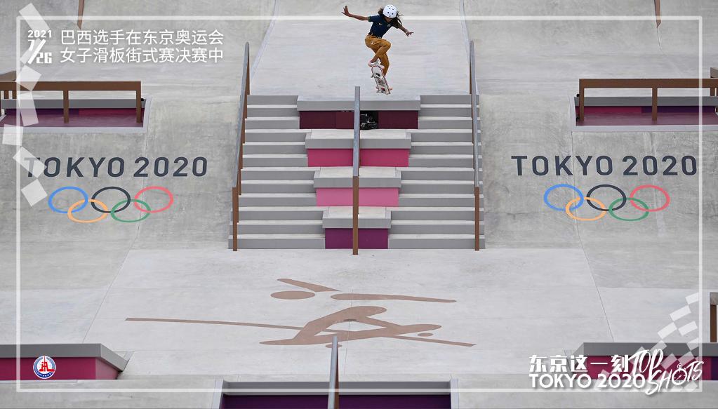 7月26日,巴西选手莱亚尔在东京奥运会女子滑板街式赛决赛中。