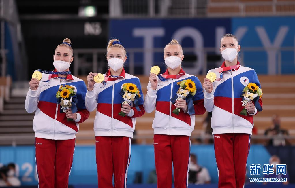 7月27日,俄罗斯运动员在颁奖仪式上。