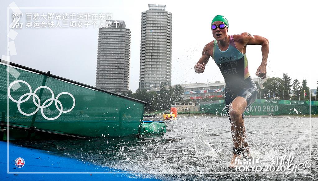 7月27日,百慕大选手弗洛拉·达菲在东京奥运会铁人三项女子个人决赛中。