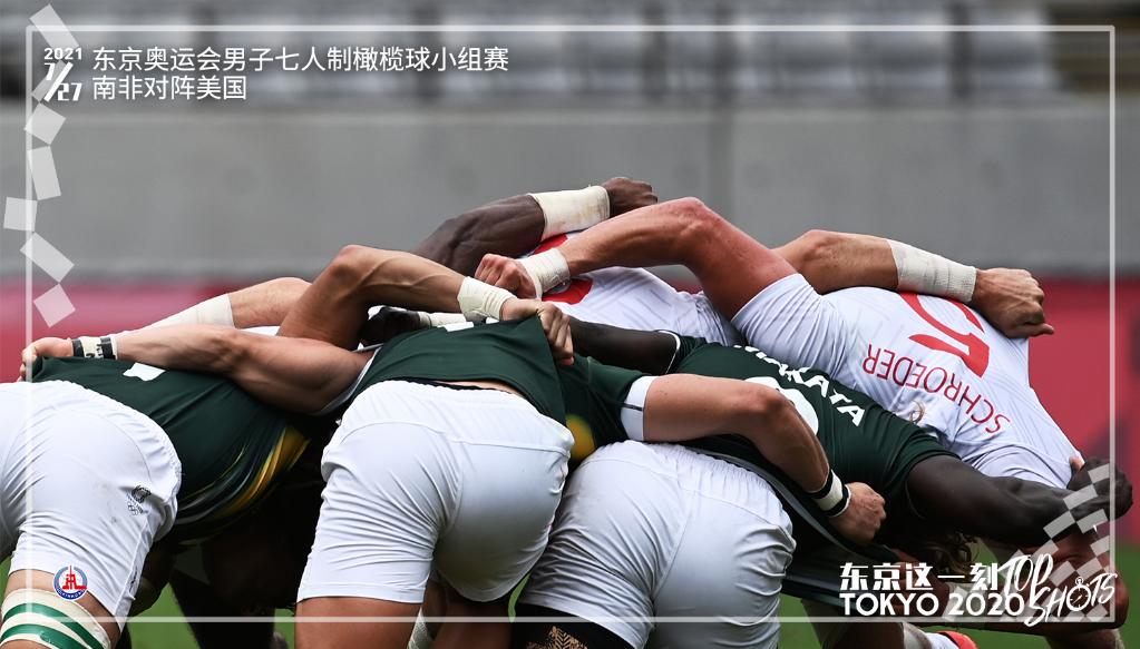 7月27日,南非队球员在东京奥运会男子七人制橄榄球小组赛中对阵美国队。