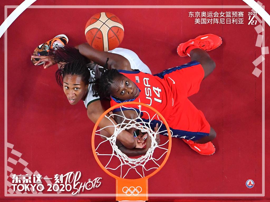 7月27日,在东京奥运会女子篮球预赛中,美国队对阵尼日利亚队。