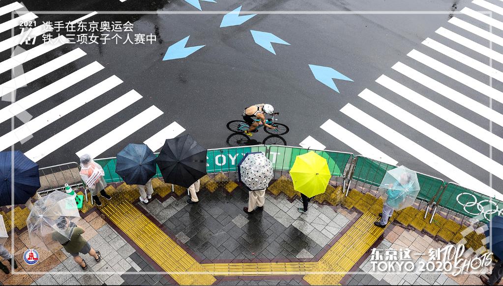 7月27日,一名选手在东京奥运会铁人三项女子个人赛中骑行。