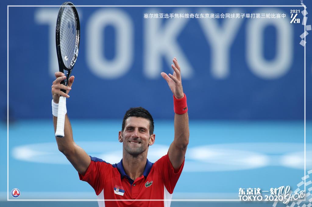 7月28日,塞尔维亚选手焦科维奇在东京奥运会男子单打第三轮比赛中。