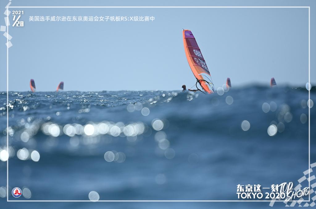 7月28日,英国选手威尔逊在东京奥运会女子帆板RS:X级比赛中。