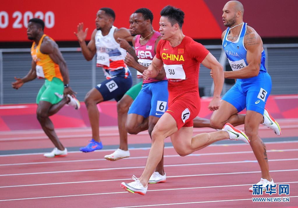 8月1日,苏炳添在比赛中。当日,东京奥运会田径男子100米半决赛在东京新国立竞技场举行。新华社记者吕小炜摄