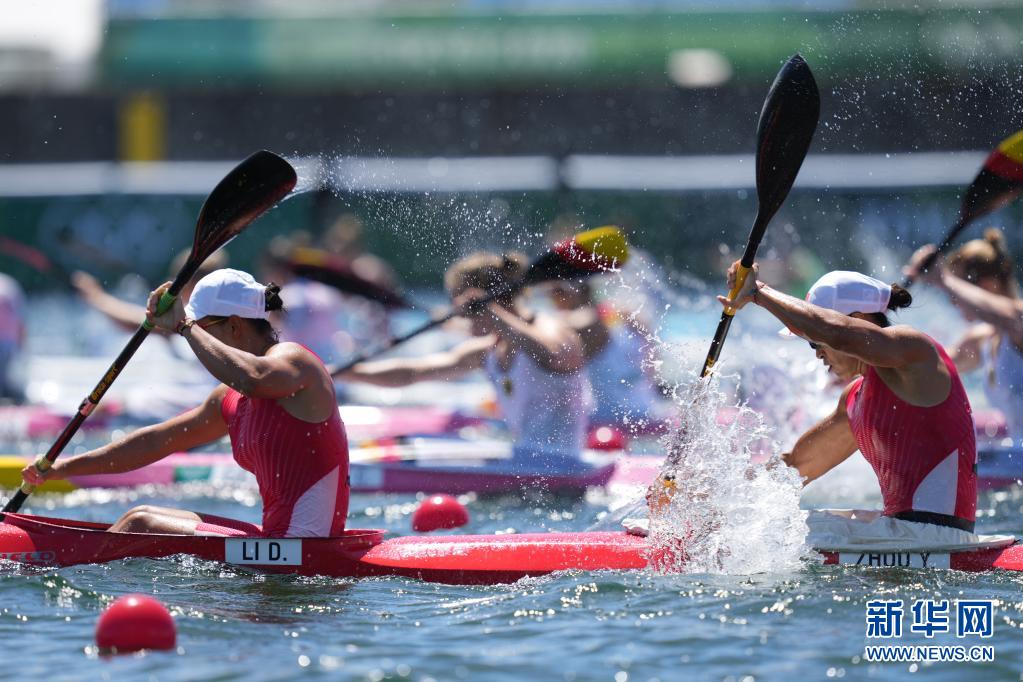 8月3日,中国选手李冬崟(左)、周玉在女子500米双人皮艇半决赛中。