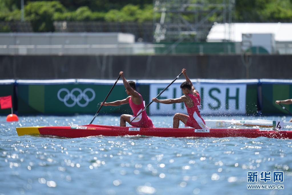 8月3日,中国选手刘浩(左)、郑鹏飞在男子1000米双人划艇半决赛中。