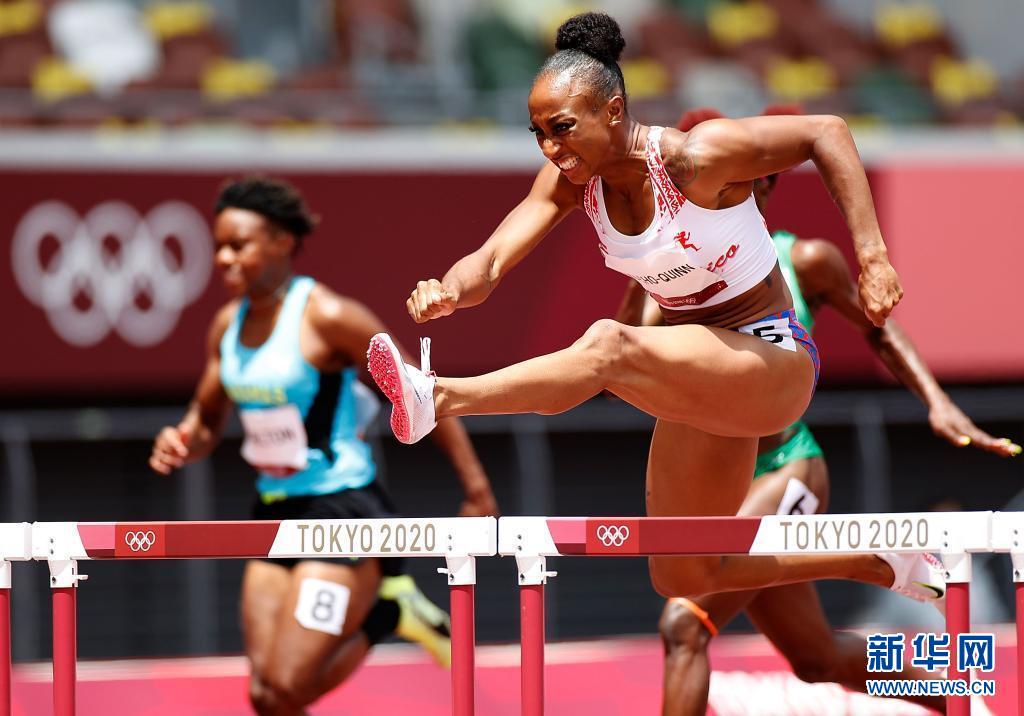 8月2日,波多黎各选手卡马乔·奎茵在女子100米栏决赛中。