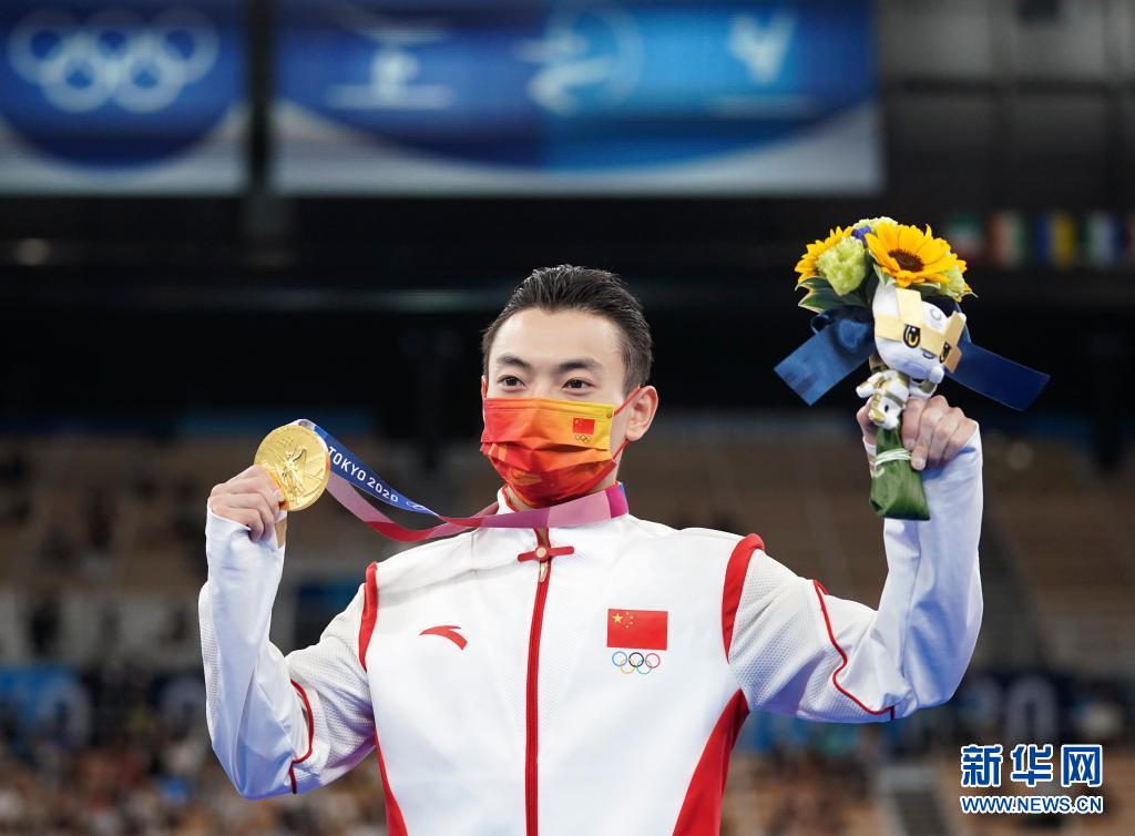 当日,在东京奥运会体操项目男子双杠决赛中,中国选手邹敬园夺得冠军。