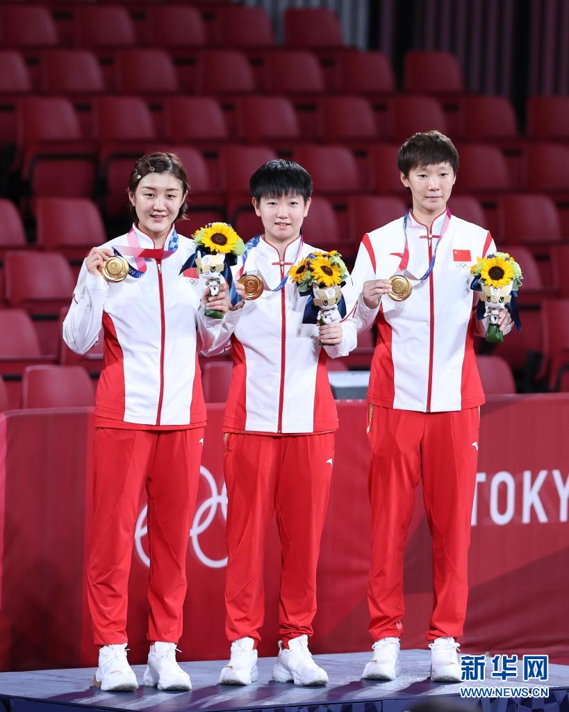 当日,在东京奥运会乒乓球女子团体决赛中,中国队战胜日本队,夺得冠军。