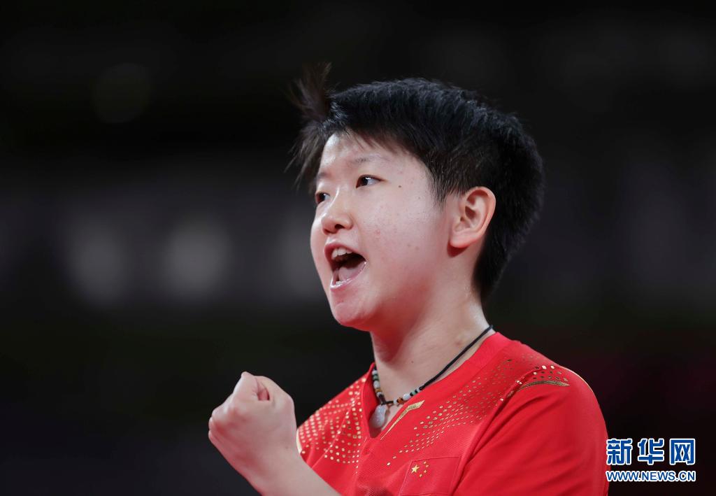 当日,在东京奥运会乒乓球女子团体决赛中,中国队战胜日本队,夺得冠军。