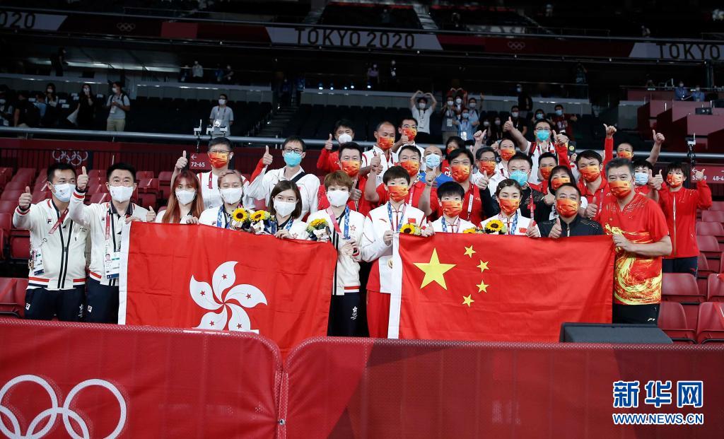 当日,在东京奥运会乒乓球女子团体决赛中,中国队战胜日本队,夺得冠军。