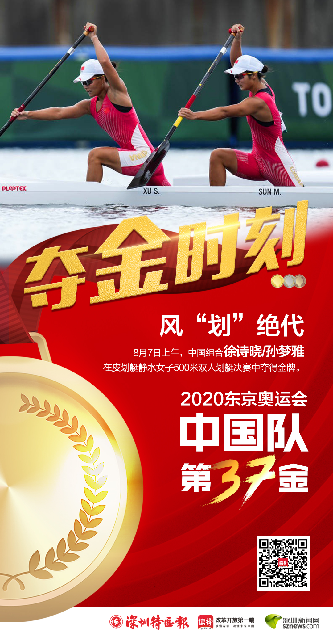 北京时间8月7日,在东京奥运会皮划艇静水女子500米双人划艇决赛中,中国组合徐诗晓/孙梦雅夺得金牌!