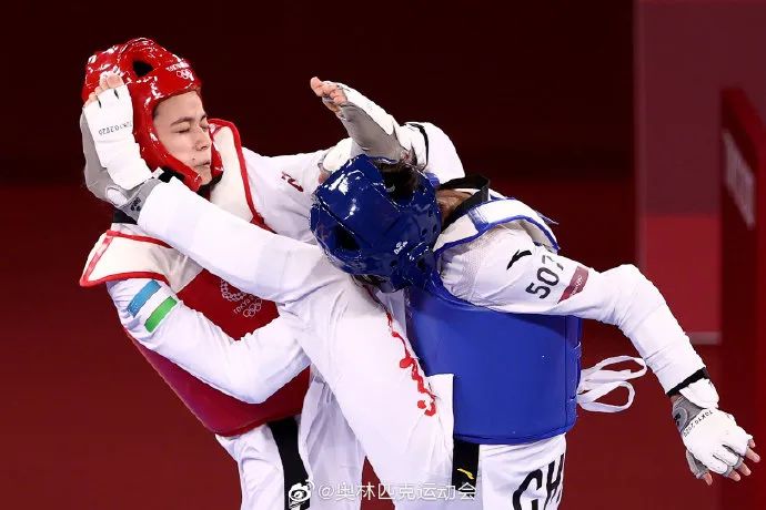 跆拳道女子67公斤级1/8比赛中中国选手张梦宇加时战胜乌兹别克斯坦选手尼格拉晋级八强