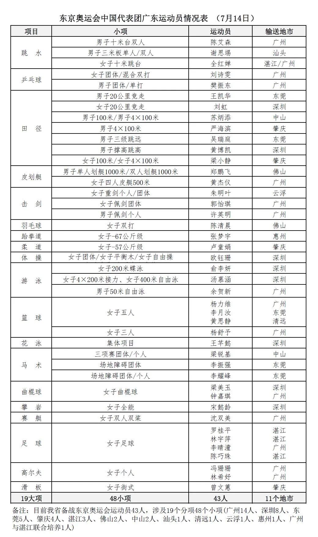 广东省有43名运动员入选中国代表团