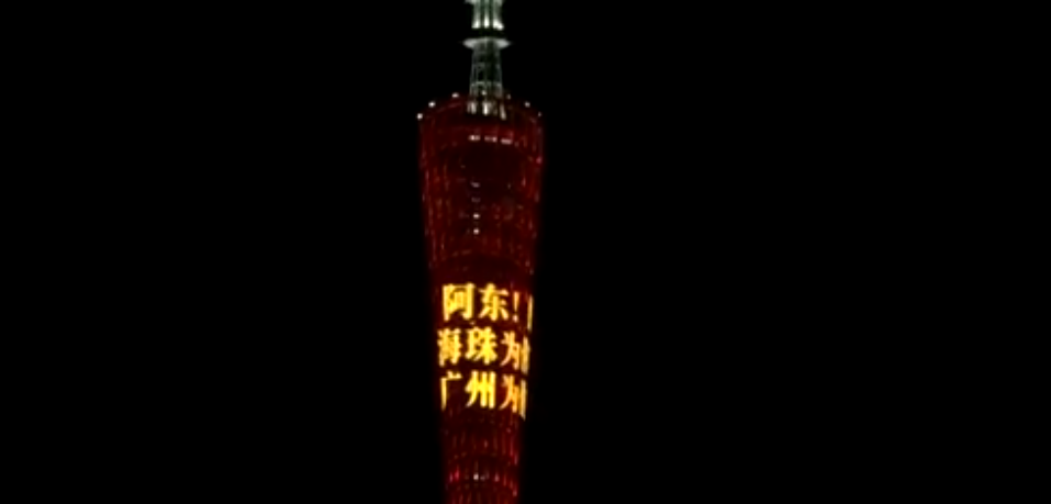 “阿东!好嘢!”广州塔为这位来自广州的冠军点亮