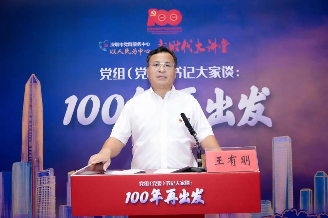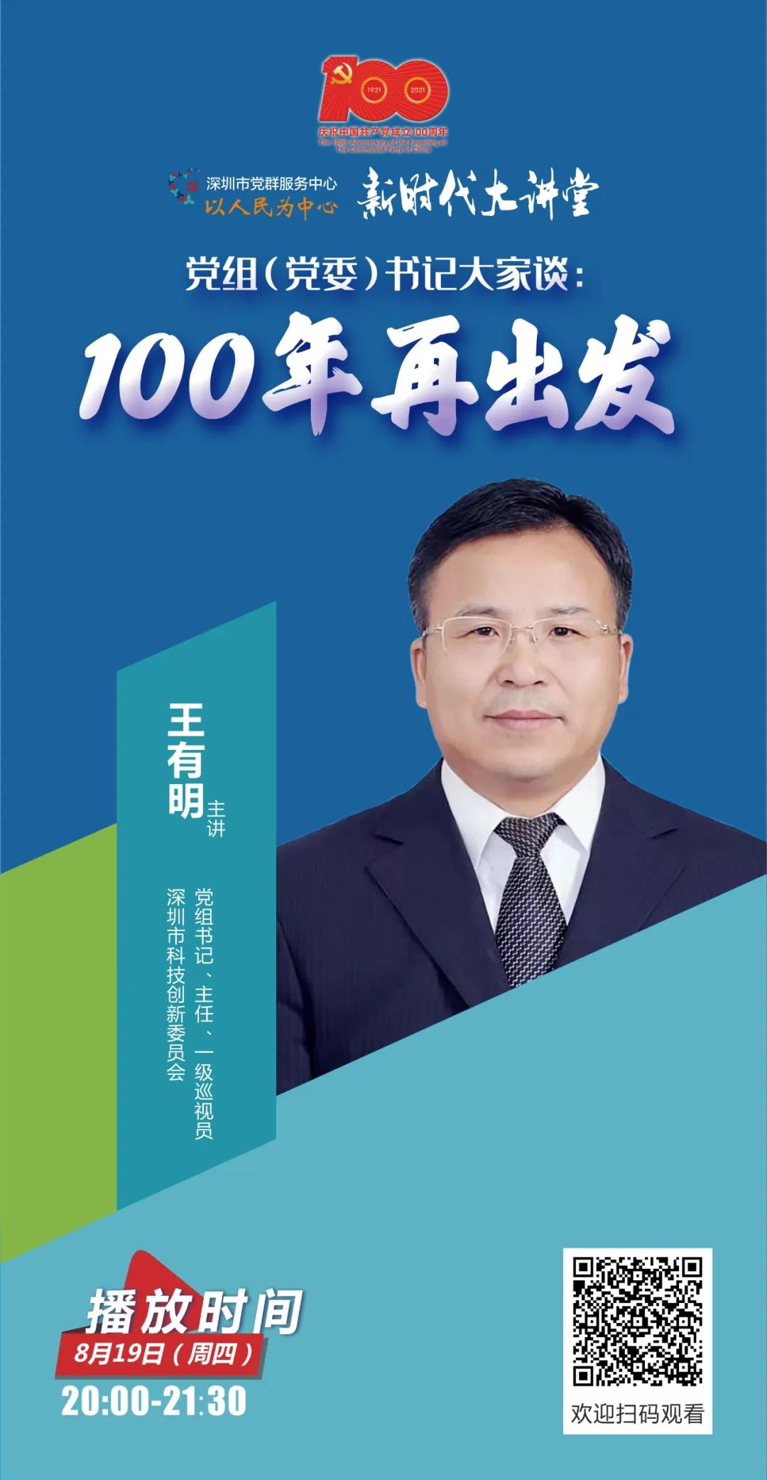 8月19日下午,新时代大讲堂“党组(党委)书记大家谈:100年再出发”系列课程第四讲在市党群服务中心举行,深圳市科技创新委员会党组书记、主任王有明以《从党的百年奋斗历史中汲取智慧力量 乘势而上勇担科技自立自强深圳责任》为题, 讲述深圳科技创新发展历程、实践和未来蓝图。