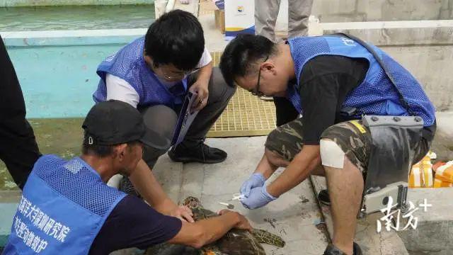 8月27日,广东海洋大学深圳研究院珊瑚保育中心专业技术人员为之前所救助的8头海龟统一植入芯片,为海龟制作了“身份证”,将其纳入身份识别系统,让每一只被救助的海龟,都有自己可追踪的数据和专属档案。