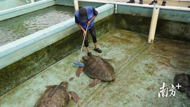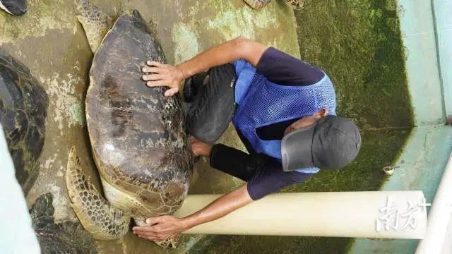 据了解,照顾“龟坚强”的富哥每天都会为受伤的海龟进行喂食和换水,每周进行消毒,目的就是为了让海龟们早日回归大海。