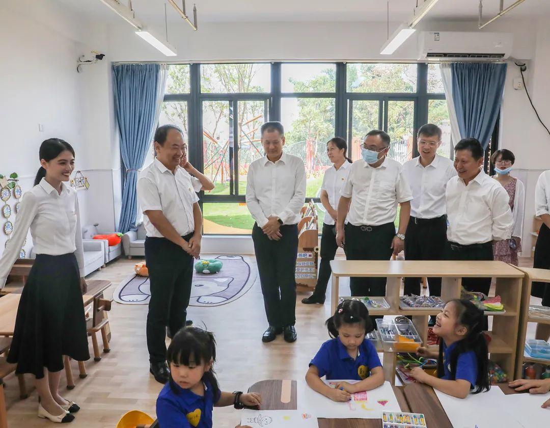 区党工委书记王延奎,区党工委副书记、管委会主任吴曲波到场见证开学典礼,并为南外深汕幼儿园揭牌。