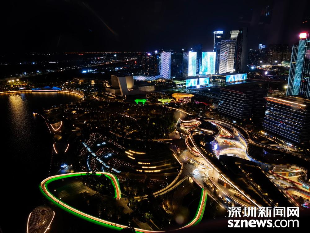 在“湾区之光”摩天轮上拍摄的深圳夜景