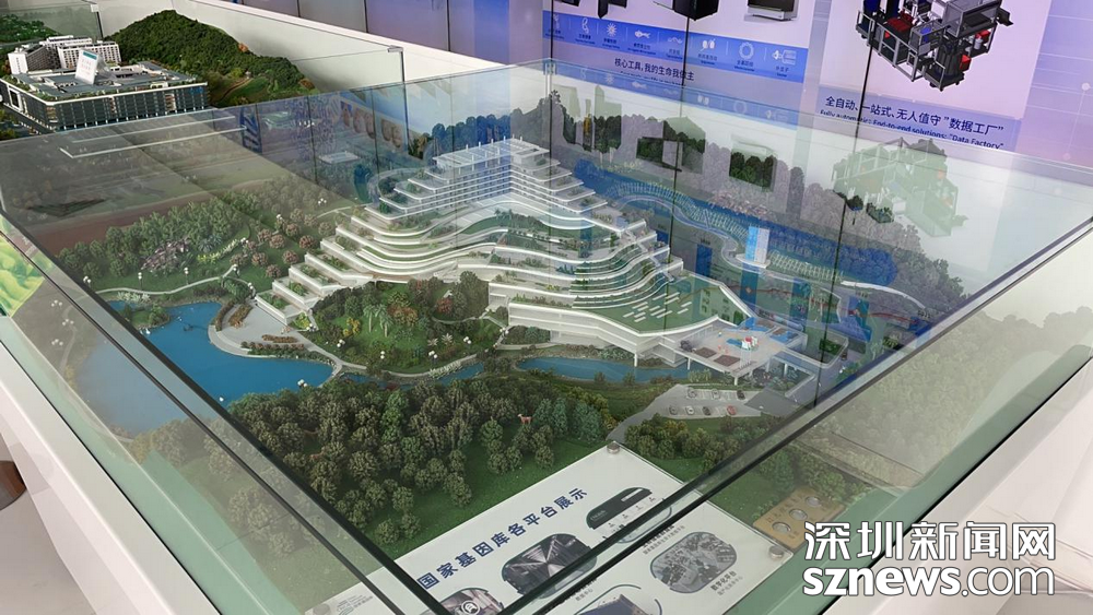随后,大V们来到基因库建筑沙盘。令人惊奇的是,基因库依山而建,整体是一个梯田的造型。原来,这座建筑的奥秘在于由于有了山体结构的支撑,建筑的每一层都相当于是第一层,可摆放很多大型设备;并且又与自然融为一体。