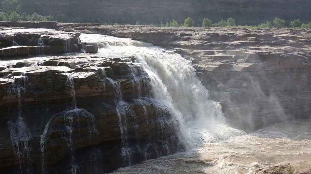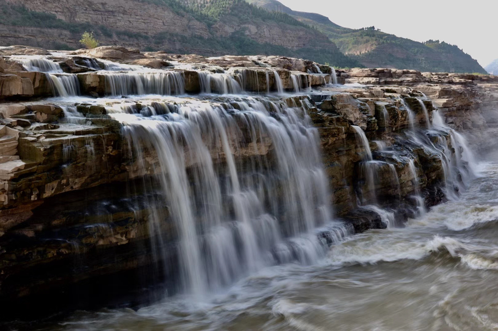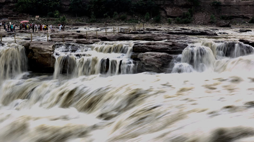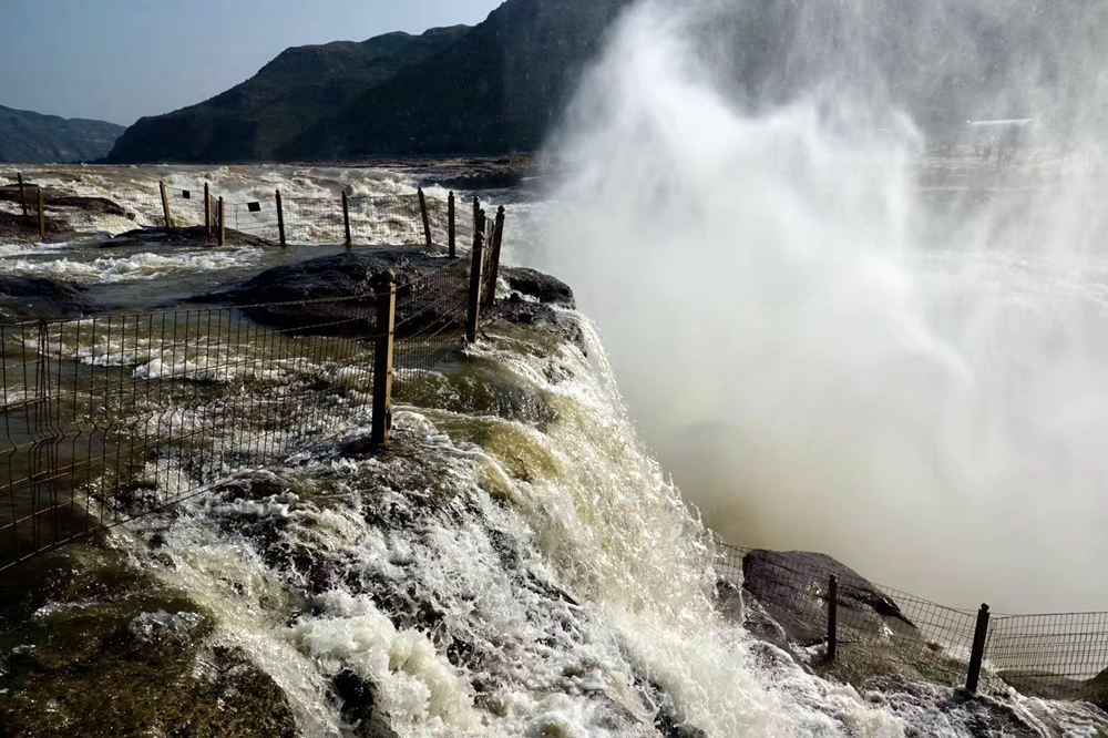 瀑布上游黄河水面宽300米,在不到500米长的距离内,被压缩到20-30米的宽度。1000立方米/秒的河水,从20多米高的陡崖上倾注而下,形成”千里黄河一壶收”的气概。这也是第四套人民币50元纸币背面的取景地。李仁奇 摄