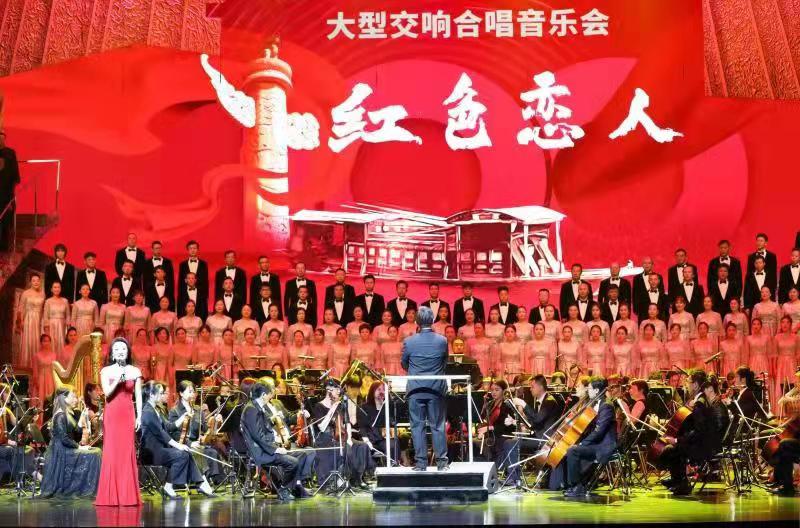 读特客户端•深圳新闻网2021年9月25日讯(记者柯霈昕)9月24日晚,第25届深圳大剧院艺术节开幕式——大型交响合唱音乐会《红色恋人》在深圳大剧院恢弘唱响。本场音乐会由著名作曲家、声乐教育家姚峰担任指挥,深圳大剧院爱乐乐团担任伴奏,深圳大剧院合唱团、深圳音协合唱团、深圳春之声合唱团、深圳市盐田区海之声合唱团、深圳中学金钟少年合唱团与深圳优秀歌唱家携手,以独唱、合唱、群唱等多样化的演唱形式,演绎20首不同风格的主旋律歌曲,为中国共产党成立100周年献上深情赞歌。音乐会舞美方面突破以往传统音乐会的舞台,采用融LED屏、高清投影、实景制作、合唱团、交响乐团为一体的立体式的全新舞台效果,在精致唯美的舞台衬托下,大屏幕上翻动着一幅幅鼓舞人心的画卷,伴随台上或激情四射或深情动人的歌唱,营造出浓厚的爱党、爱国、奋进、昂扬的精神氛围,激发观众强烈的爱党、爱国情怀,为观众呈现一幅幅波澜壮阔的党史画卷,献礼党的百年华诞。